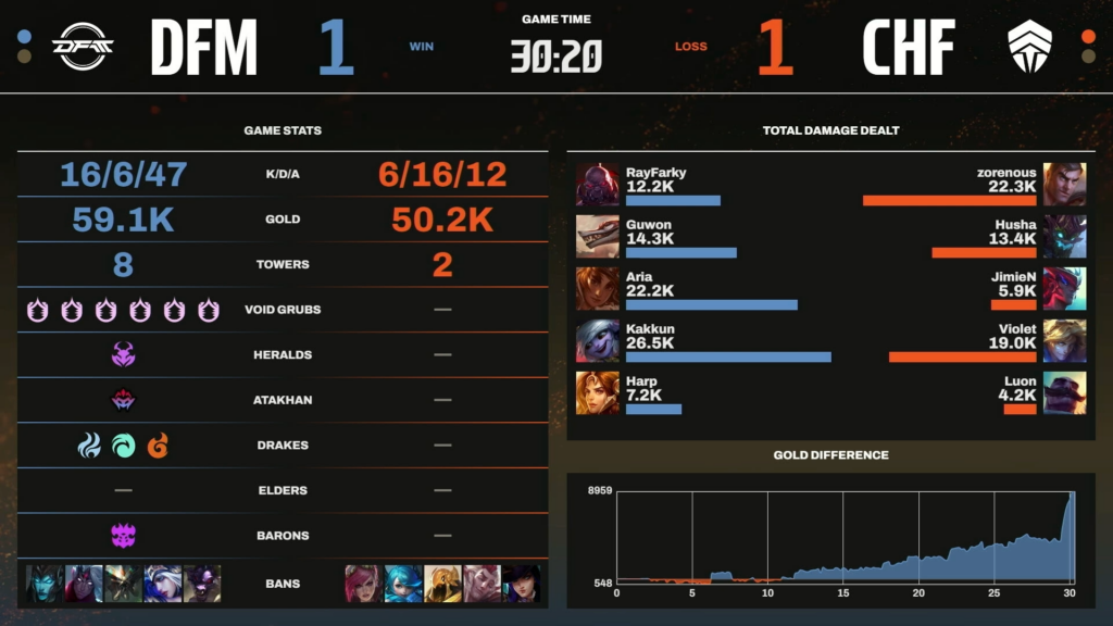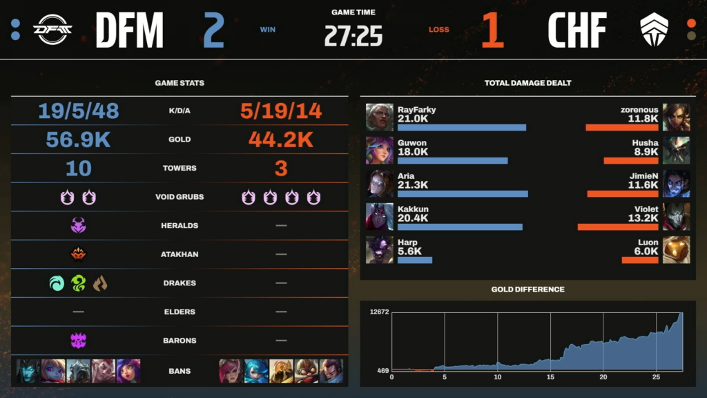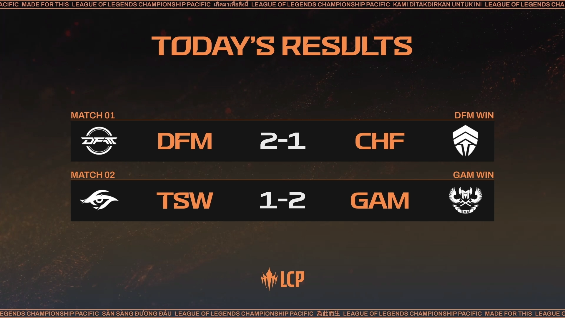 LCP 2025 Mid Season Day 2が終了しました。DFM vs CHF - TSW vs GAMで対戦が行われ、DFM/GAMが勝利しました。