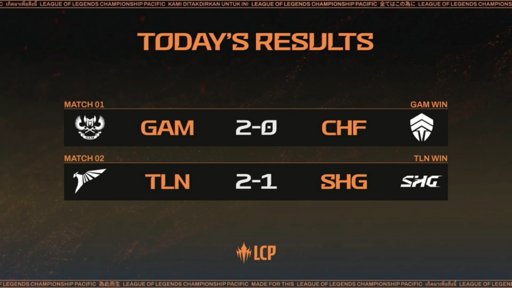 LCP 2025 Mid Season Week4 Day1が終了しました。GAM/TLNが勝利しました。