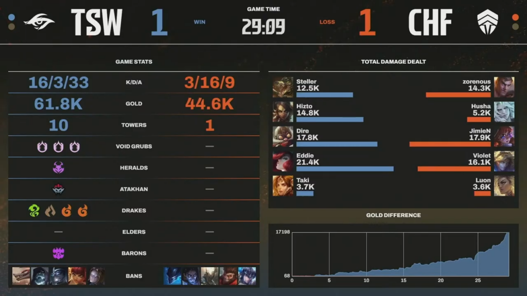 LCP 2025 Mid Season Week6 Day1が終了しました。TSW/CFOが勝利しました。