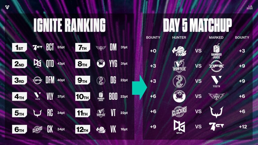 LJL 2025 シーズンでは、新たにチャンピオンシップポイント制度が導入されます。チームは各レギュラートーナメントでの順位に基づきチャンピオンシップポイントを獲得し、チャンピオンシップポイントのランキング上位6チームが7〜8月に開催される決勝トーナメントへ出場できます。