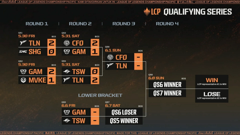 Qualifying Seriesでは、Round 1とRound 2がBO3形式、それ以降はBO5形式で対戦が行われます。Grand Finalに進出した2チームは、いずれもMSIの出場権を獲得します。