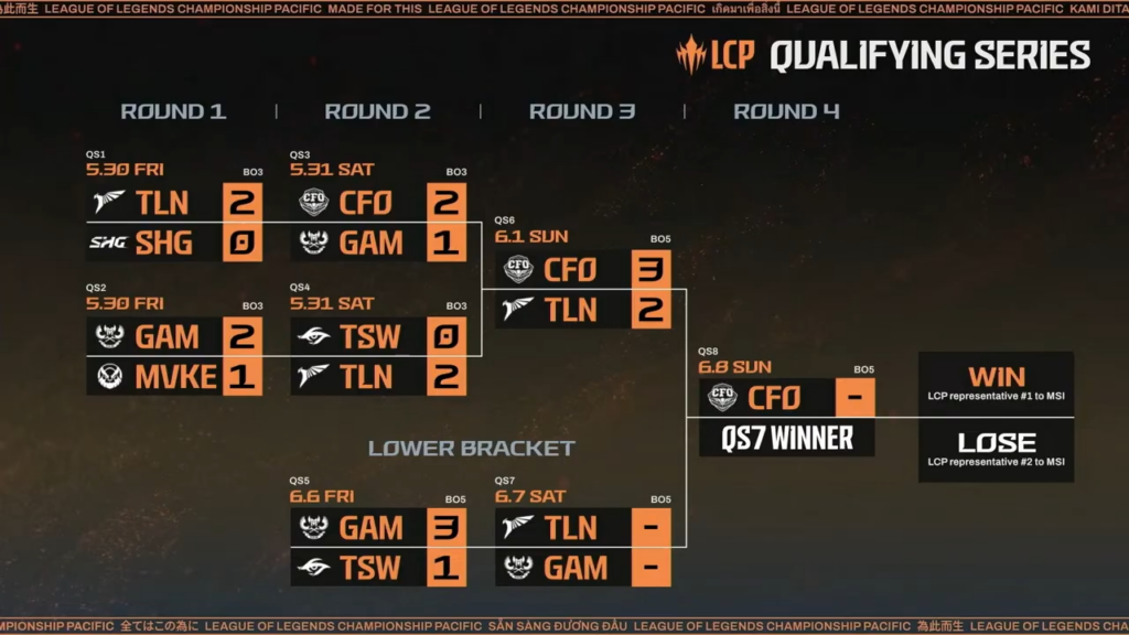 Qualifying Seriesでは、Round 1とRound 2がBO3形式、それ以降はBO5形式で対戦が行われます。Grand Finalに進出した2チームは、いずれもMSIの出場権を獲得します。
