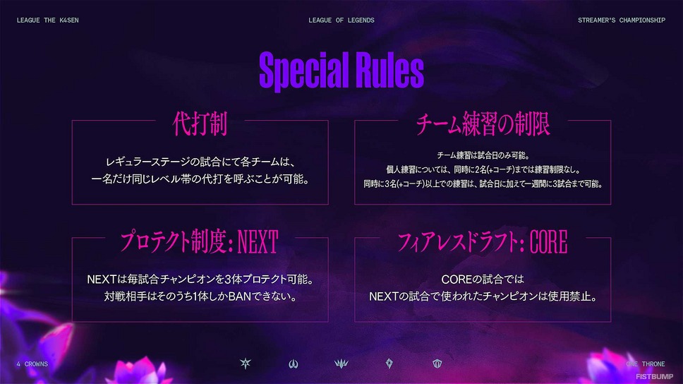 CORE限定ルール: NEXTの試合で使用されたチャンピオンは使用不可。