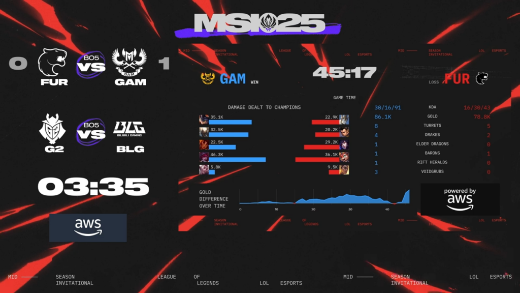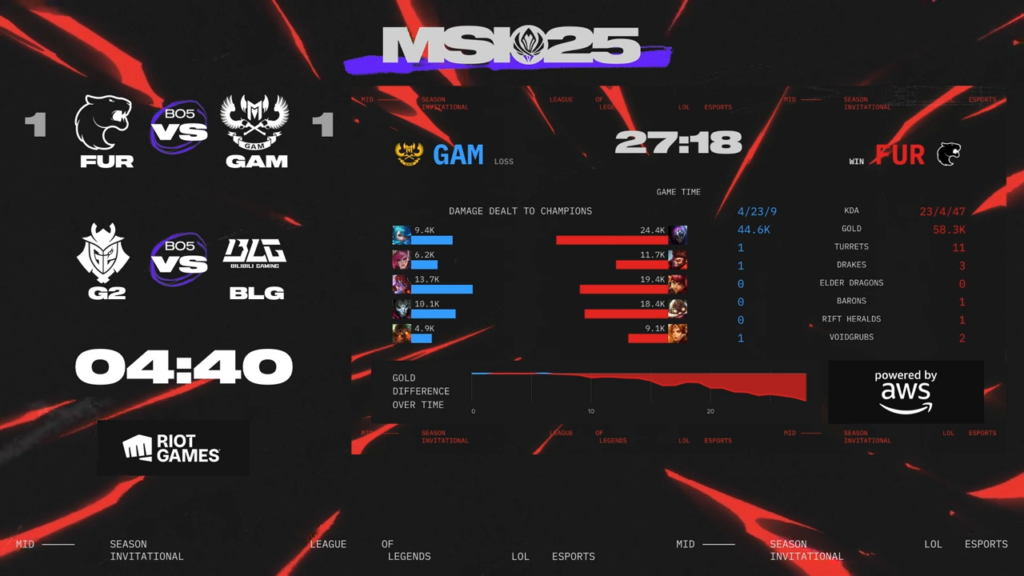 MSI2025 Play-Ins Day2が終了、GAMがFURに3-2で勝利しFURが敗退、BLGがG2に3-0で勝利