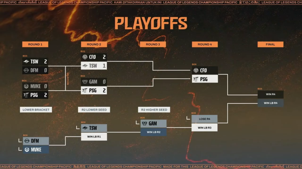 9月5日から21日、プレイオフへ勝ち進んだ6チームがWorlds 2025への3つの出場枠をかけてBO3/BO5形式のダブルエリミネーションブラケットを戦います。ここで首位となったチームが、栄えある初代LCPチャンピオンとなります。